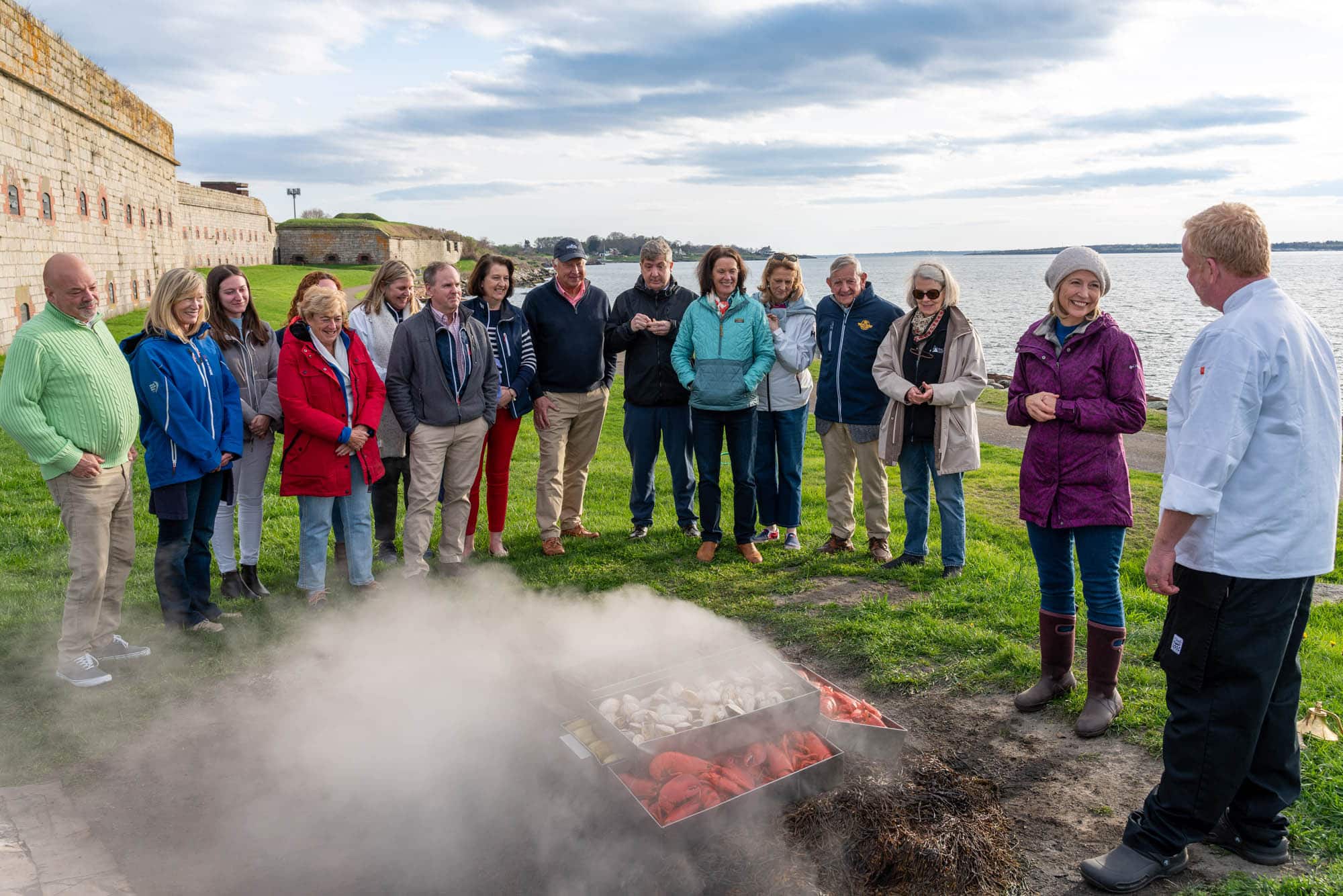 Of course, the best way to enjoy these quahogs is with a good, ole fashioned New England clambake! If you’re in Newport, why not arrange one with McGrath Clambakes at a landmark like Historic Fort Adams? Here the clams are made by heating up rocks and using seaweed so that saltwater will steam and flavor the clams and other food. T.R. McGrath’s family is famous in these parts for his clambakes. His grandfather staged them back in the day and his father once put one on for 2,000 people. So far his biggest is 1,000 guests.